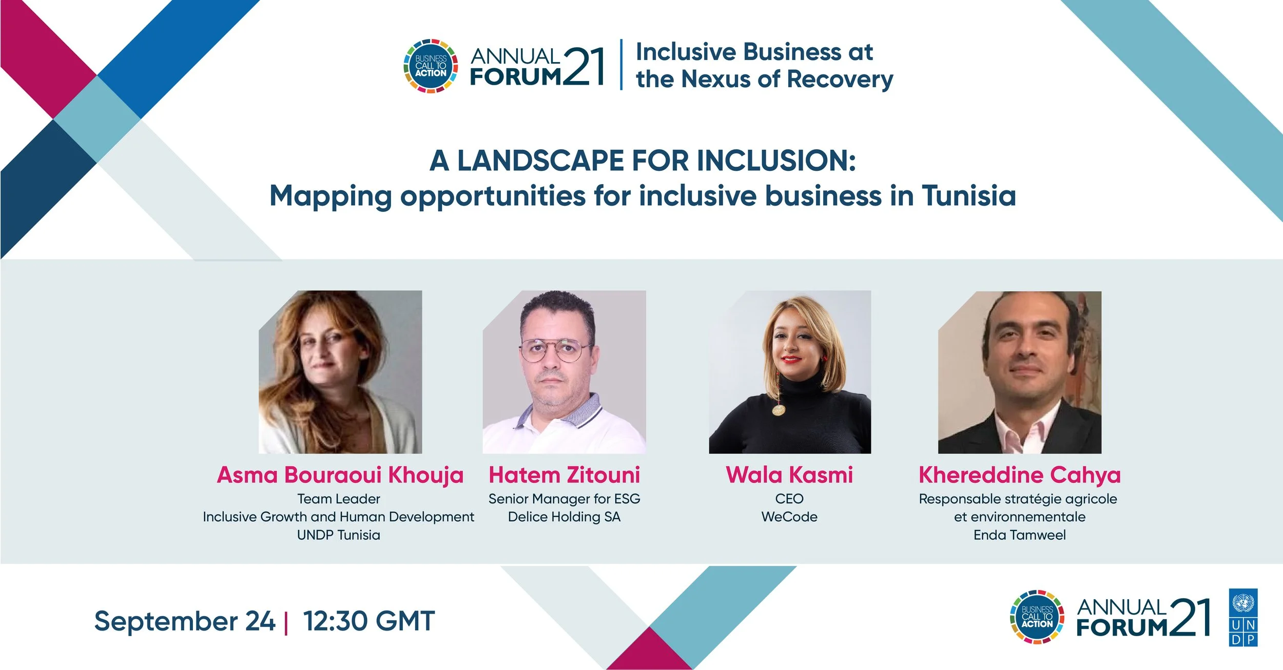 A deep dive into the opportunities for development of inclusive business in Tunisia. With perspectives from established inclusive businesses in Tunisia, this panel looks at access to funding, availability of information, regulatory barriers and capacity building for inclusive businesses in the country and how to increase the impact of such businesses overall.